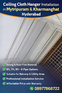 Best Ceiling Cloth Hanger in LB Nagar Hyderabad | Balcony Drying Rack Installation eiling Cloth Hanger Installation in LB Nagar, Hyderabad provides premium stainless steel balcony ceiling cloth hangers, drying racks, and roof drying systems for apartments and homes. We offer professional installation, smooth pulley systems, heavy-duty rods, and long-lasting quality. Our services are available in LB Nagar, Vanasthalipuram, Hayathnagar, Nagole, Uppal, and nearby Hyderabad areas. Same-day installation available.
